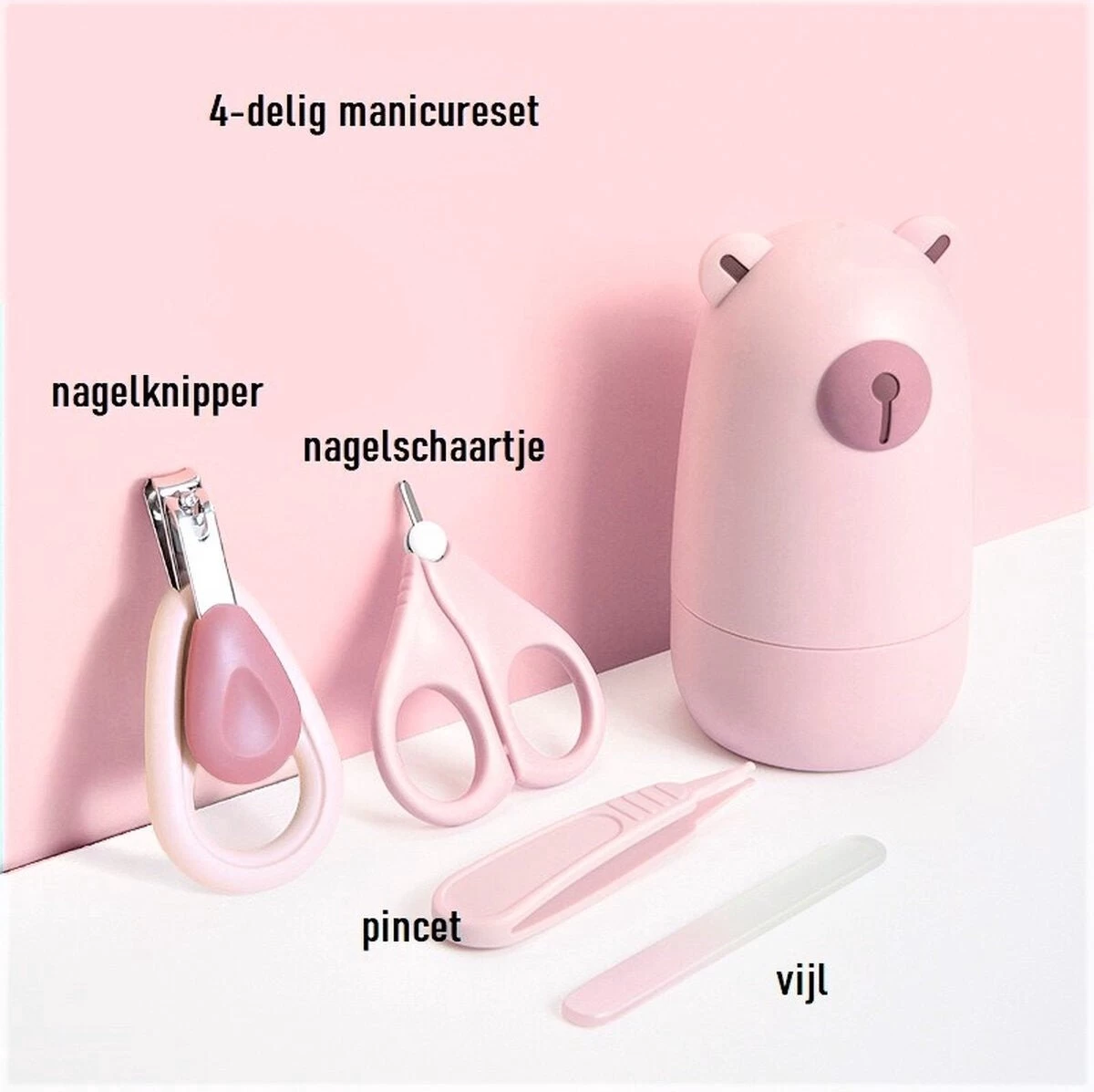 Dit 4-delig baby manicureset is ideaal om de nageltjes van jouw baby mee te verzorgen. Bij de geboorte van je baby zijn de nagels nog erg gevoelig en wordt er daarom aangeraden om een vijl te gebruiken. Naarmate de nagel wat harder wordt, is het ook mogelijk om een nagelknipper of nagelschaartje te gebruiken.