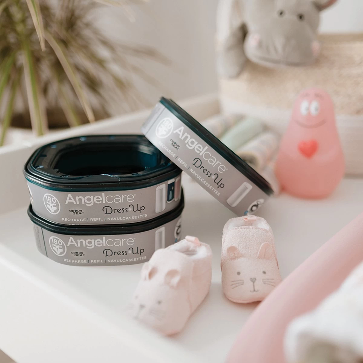 Met deze Angelcare Dress Up navulcassettes kun je ongeveer 6 maanden lang volle luiers deponeren in de Dress Up luieremmer.