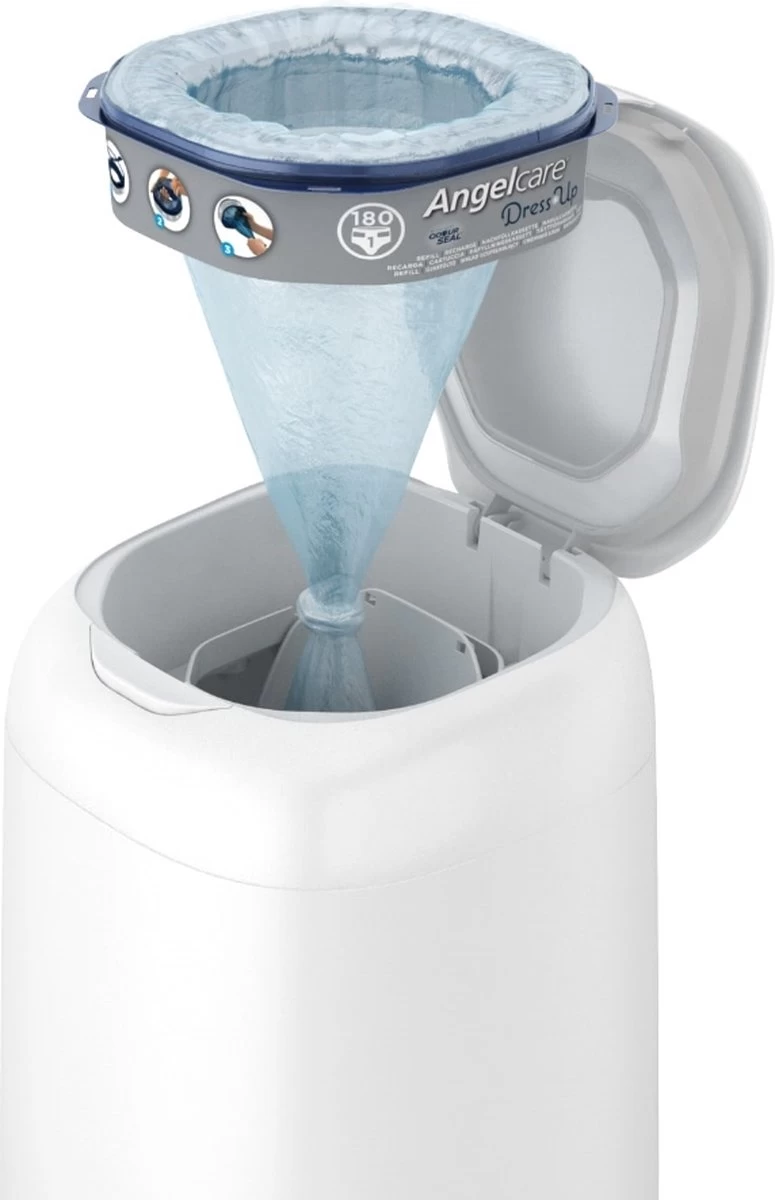 Het Angelcare Nappy Disposal System is dankzij het push & lock systeem erg eenvoudig in gebruik. Je legt de volle luier in de Dress Up luieremmer (apart verkrijgbaar), waarna deze automatisch luchtdicht verpakt wordt in één van de zakken van de navulcassette.