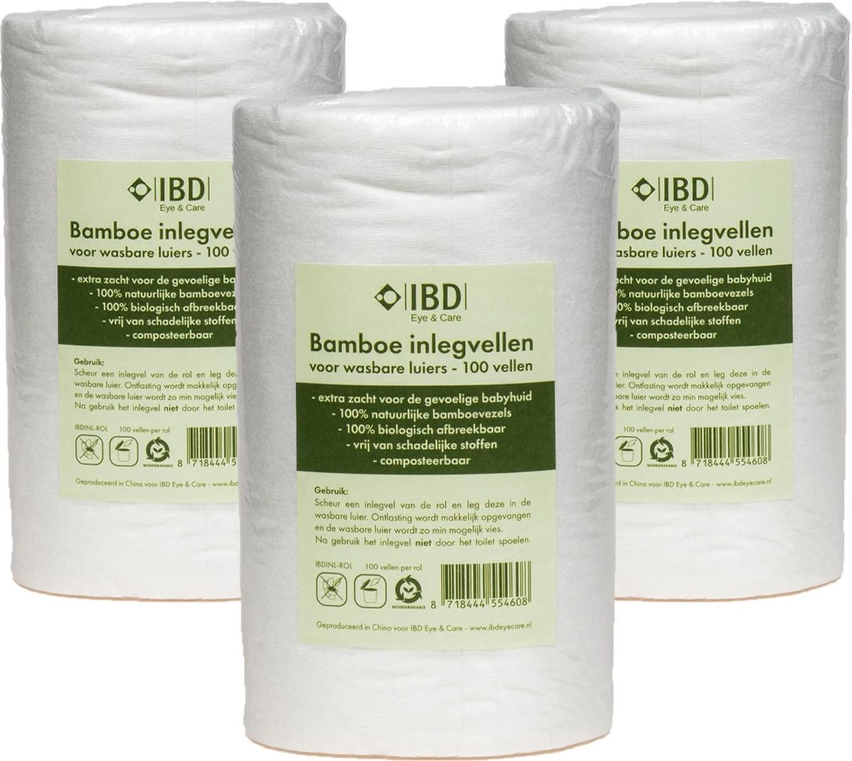 Bamboe inlegvellen zijn ideaal om te gebruiken bij wasbare luiers. Een rol bevat 100 inlegvellen.