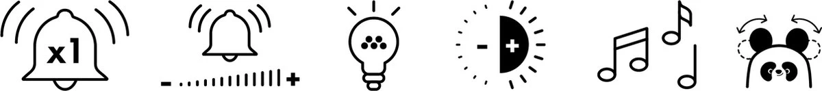 Alle instellingen kunnen aan de achterkant van de kinderwekker worden aangepast.