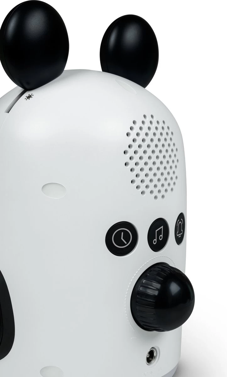 Trek aan het andere oor om het alarm van de Bigben kinderwekker te activeren, dat op de gewenste tijd af zal gaan. Je kan ook de lichtintensiteit van het scherm op zijn buik aanpassen.