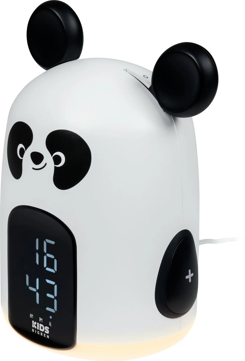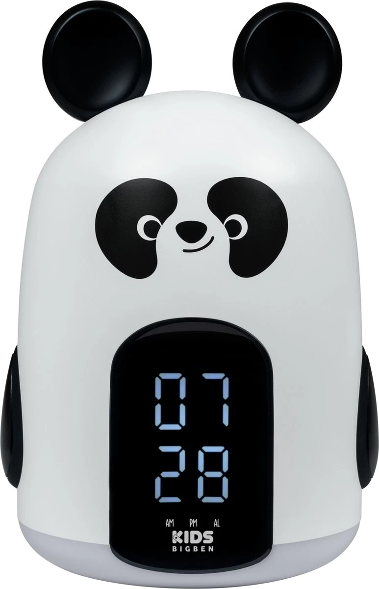 Dit is de Bigben kinderwekker met geluidseffecten in de vorm van een vrolijke panda. Deze Bigben pandakinderwekker met geluidseffecten is zowel geschikt als wekker en nachtlampje. Zo zal je altijd fijn wakker worden met deze vriendelijke panda naast je bed; stel een van de drie melodieën in als je alarm.