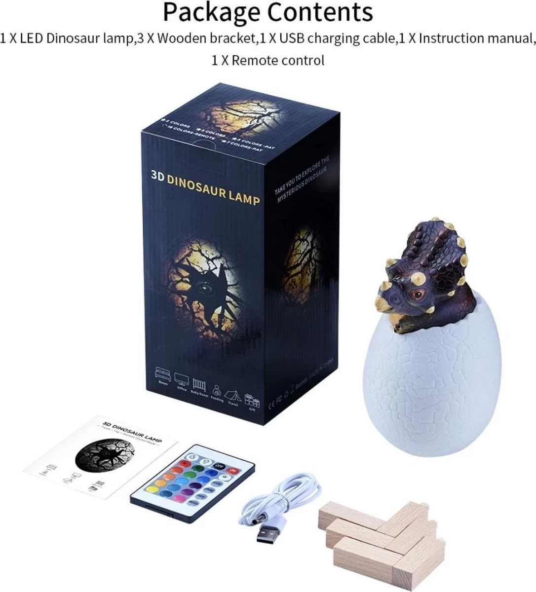 Deze speelse dinolamp in de uitvoering Triceratops is een must have voor in de kinderkamer, makkelijk bedienbaar via de bijgeleverde afstandbediening of door een klopje op de rug veranderd de kleur in een van de gewenste 16 variabele kleuren.