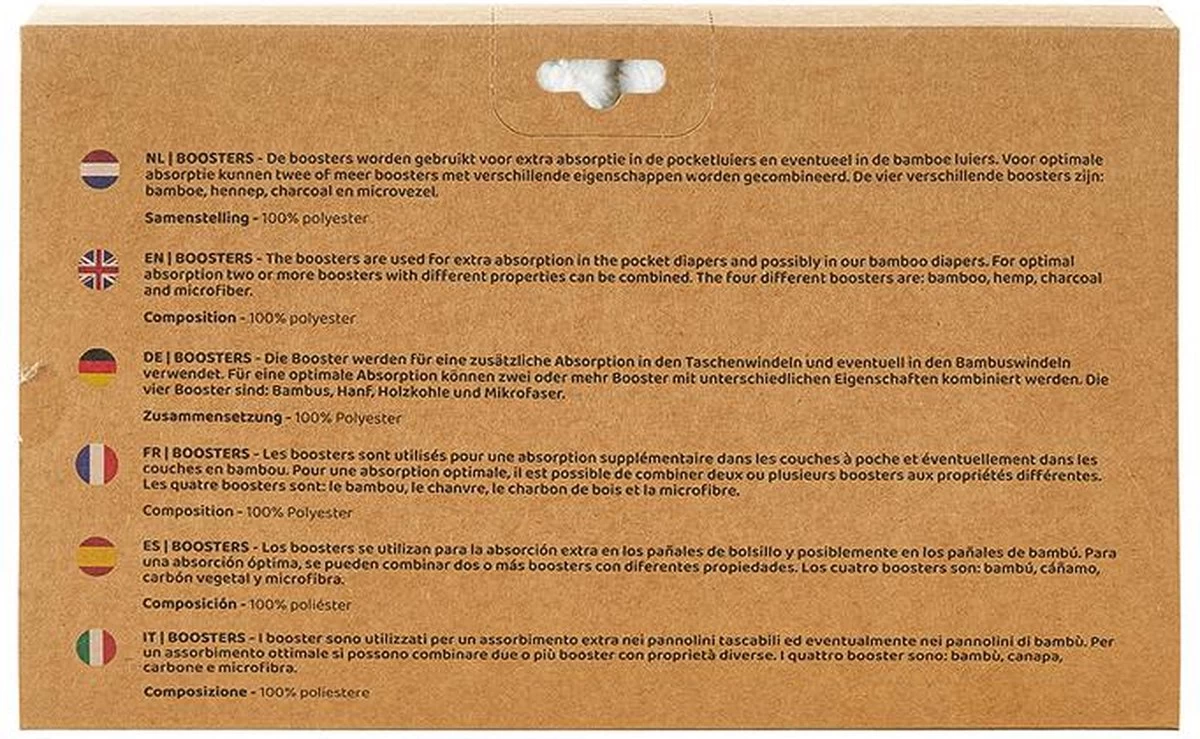 Let op dat je de microvezel booster niet direct tegen de billetjes van je baby legt, maar stop ze in de opening van de pocketluier.
