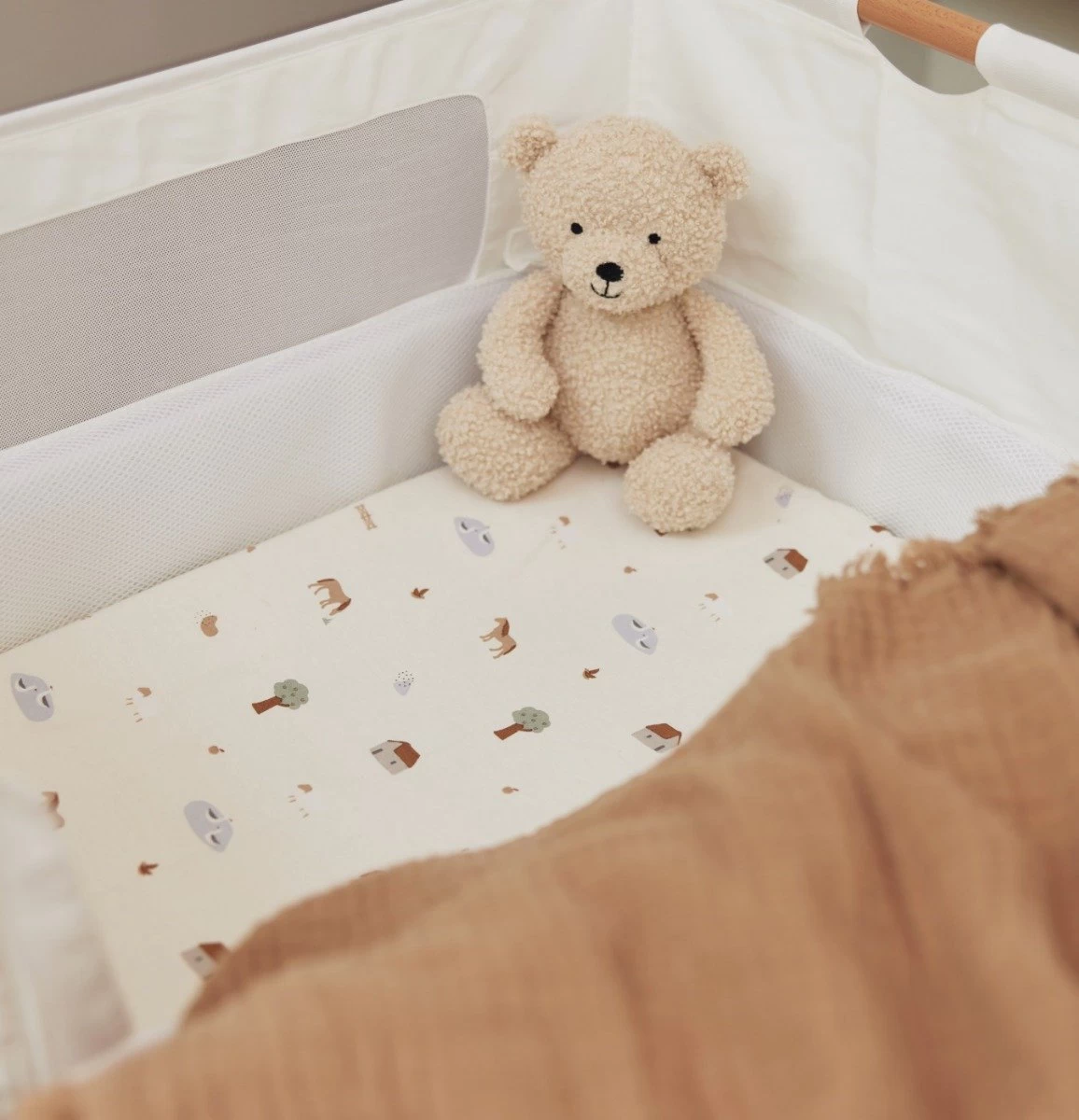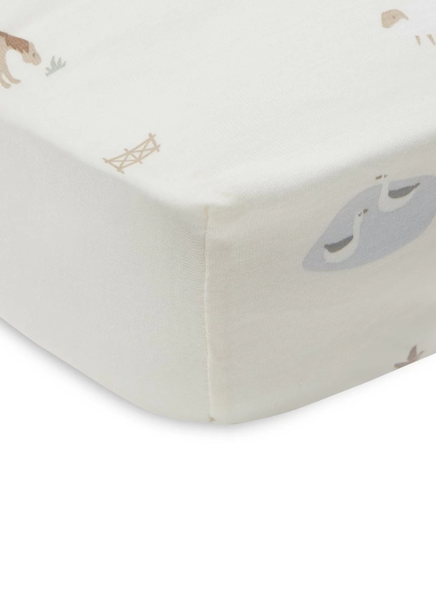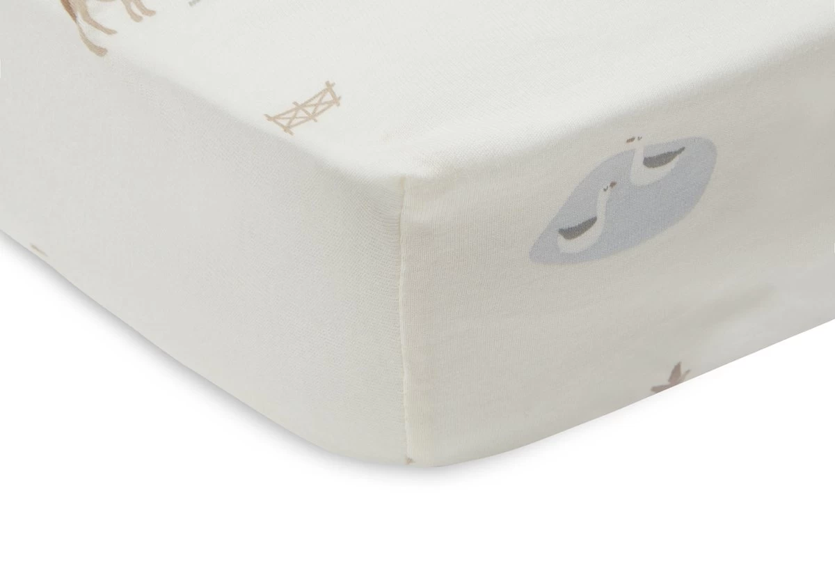 Bescherm het matrasje van het ledikantje met dit basic zachte hoeslaken met de stoere Farm print. Voor de beste bescherming gebruik je dit jerseyhoeslaken over het dikkere molton hoeslaken.
