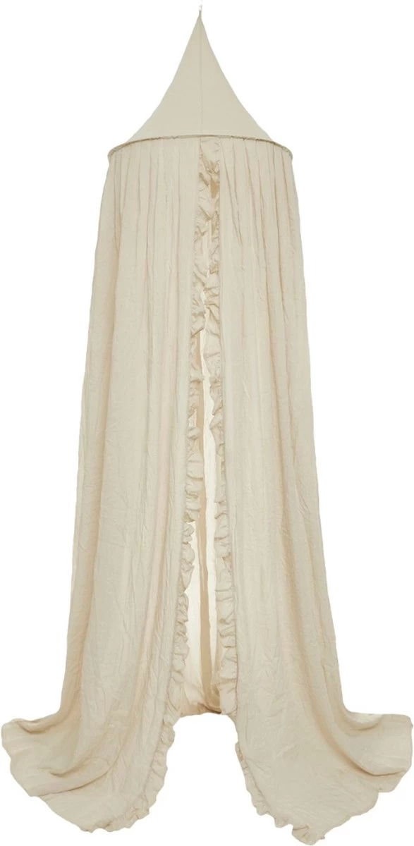 Deze prachtige vintagelook klamboe met ruffles maakt van het babybed een knusse slaapplek. En je zult zien: zodra je de klamboe hebt opgehangen is de babykamer af. Het geeft sfeer en geborgenheid.