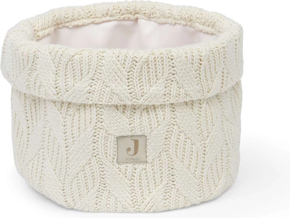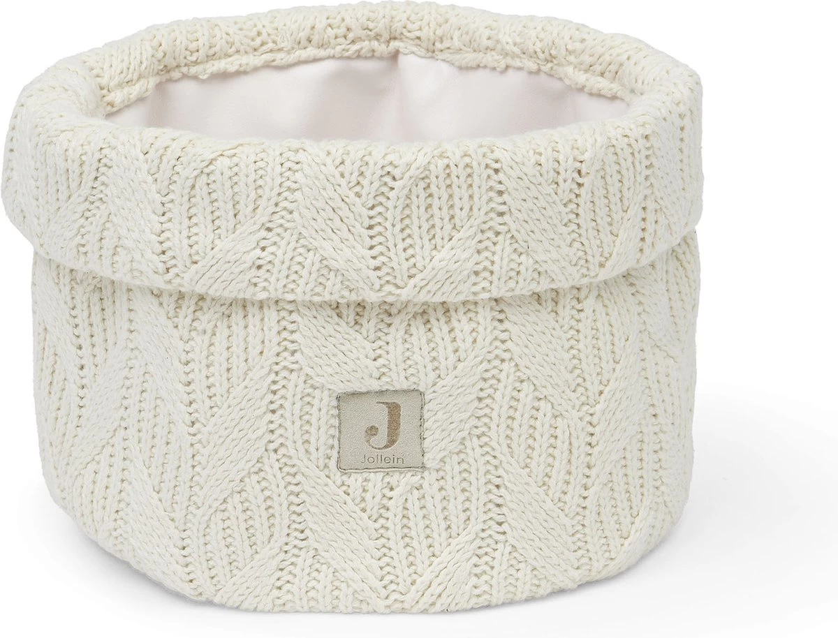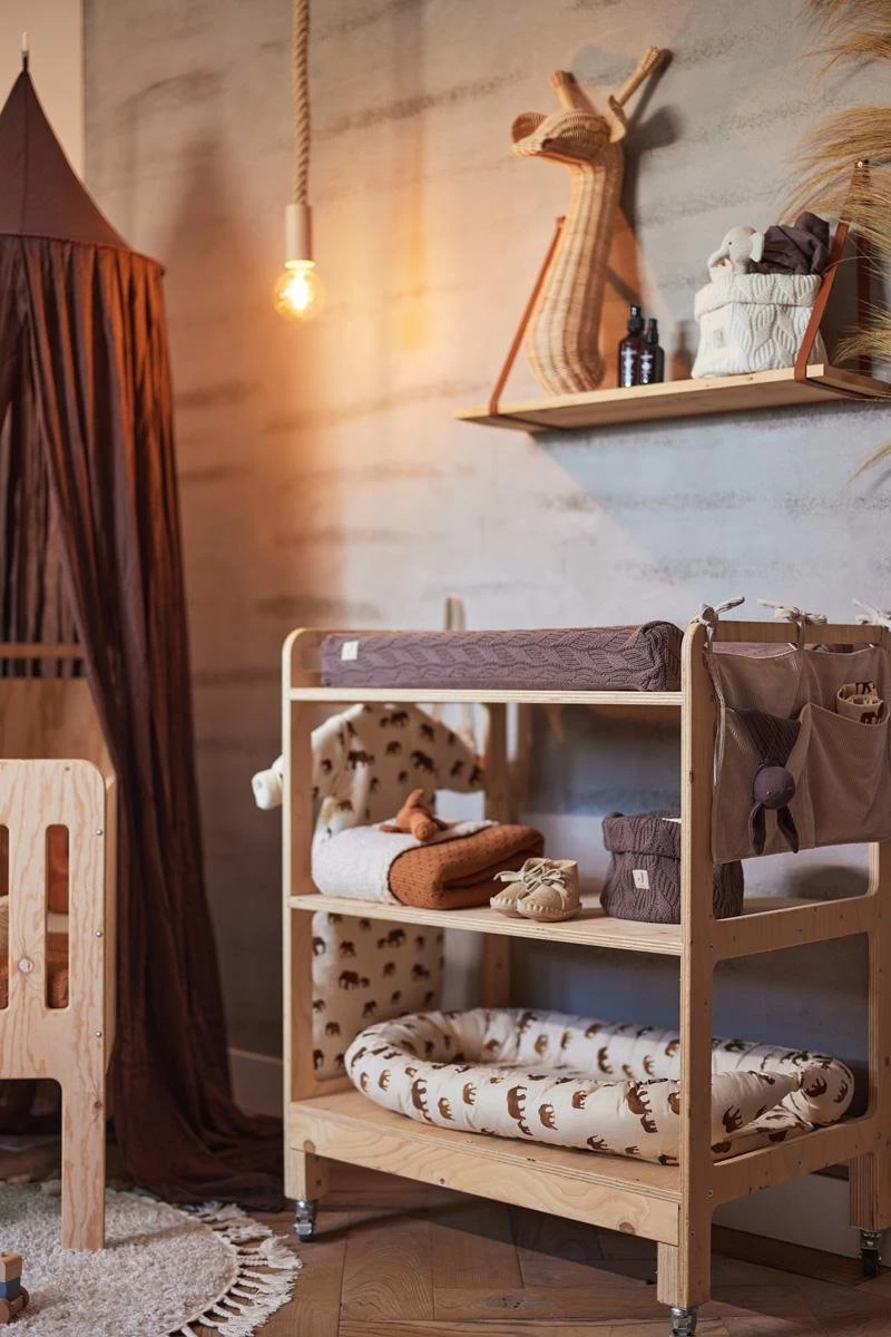 De gebreide stof in trendy kleur past in ieder interieur dus zet het gerust in de box of bij de bank met die extra luiers of monddoekjes voor het grijpen.