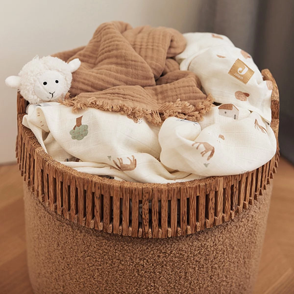Huisje, boompje, beestje! Deze prachtige Farm print is geïnspireerd op het buitenleven. De print bevat allerlei diertjes die je op de boerderij terugziet. Deze vrolijke print staat gegarandeerd leuk in iedere babykamer. Ontdek onze slaapzakjes, hydrofiele doeken en slabbetjes met deze schattige print. Wist je dat het lammetje van de Farm print haar eigen collectie heeft bij Jollein?