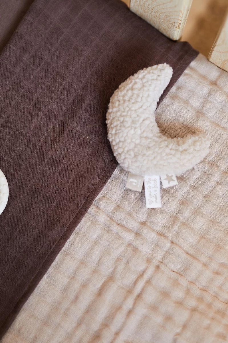 In de rammelaar zit een belletje dat zacht rinkelt als je baby het maantje beweegt. Voor je kindje heel interessant om eindeloos te herhalen. En door de superzachte uitvoering is er na het spelen ook nog mogelijkheid om gewoon lekker met de maan te knuffelen.