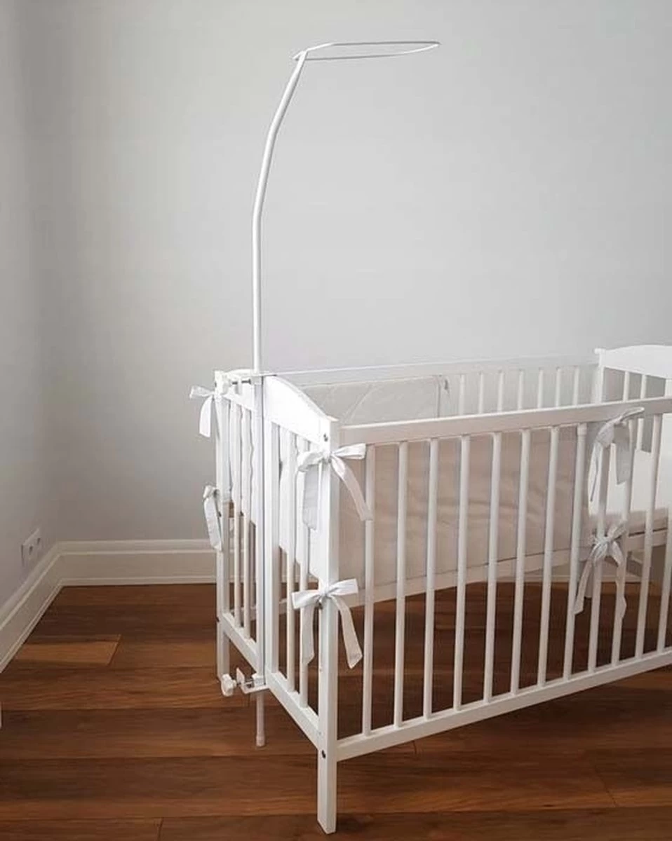 Een hemeltje voor een wieg of ledikant bedje wat de baby een geborgen gevoel geeft en sfeer brengt in de babykamer. Het sluiertje is verkrijgbaar in verschillende kleuren. De lengte is 155 cm en de stof bestaat uit polyester en katoen wat mooi soepel valt om het bedje van jou kleine.