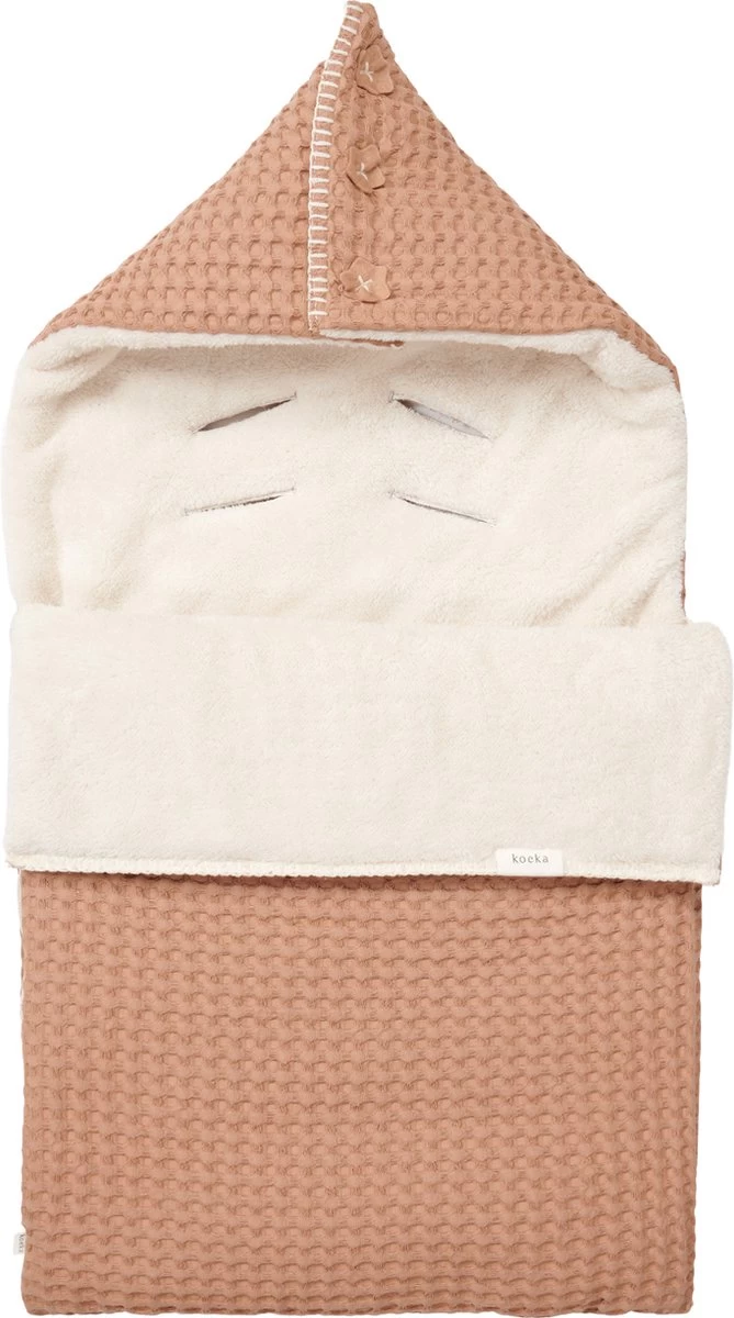 Deze voetenzak voor autostoel 0+ en Maxi-Cosi is gemaakt van katoen en gevoerd met warme, zachte teddy. De populaire wafelstof van Koeka is een echte bestseller en verkrijgbaar in verschillende kleuren. De designers laten zich inspireren door de laatste interieurtrends zodat de kleuren van de voetenzakken daarbij aansluiten.
