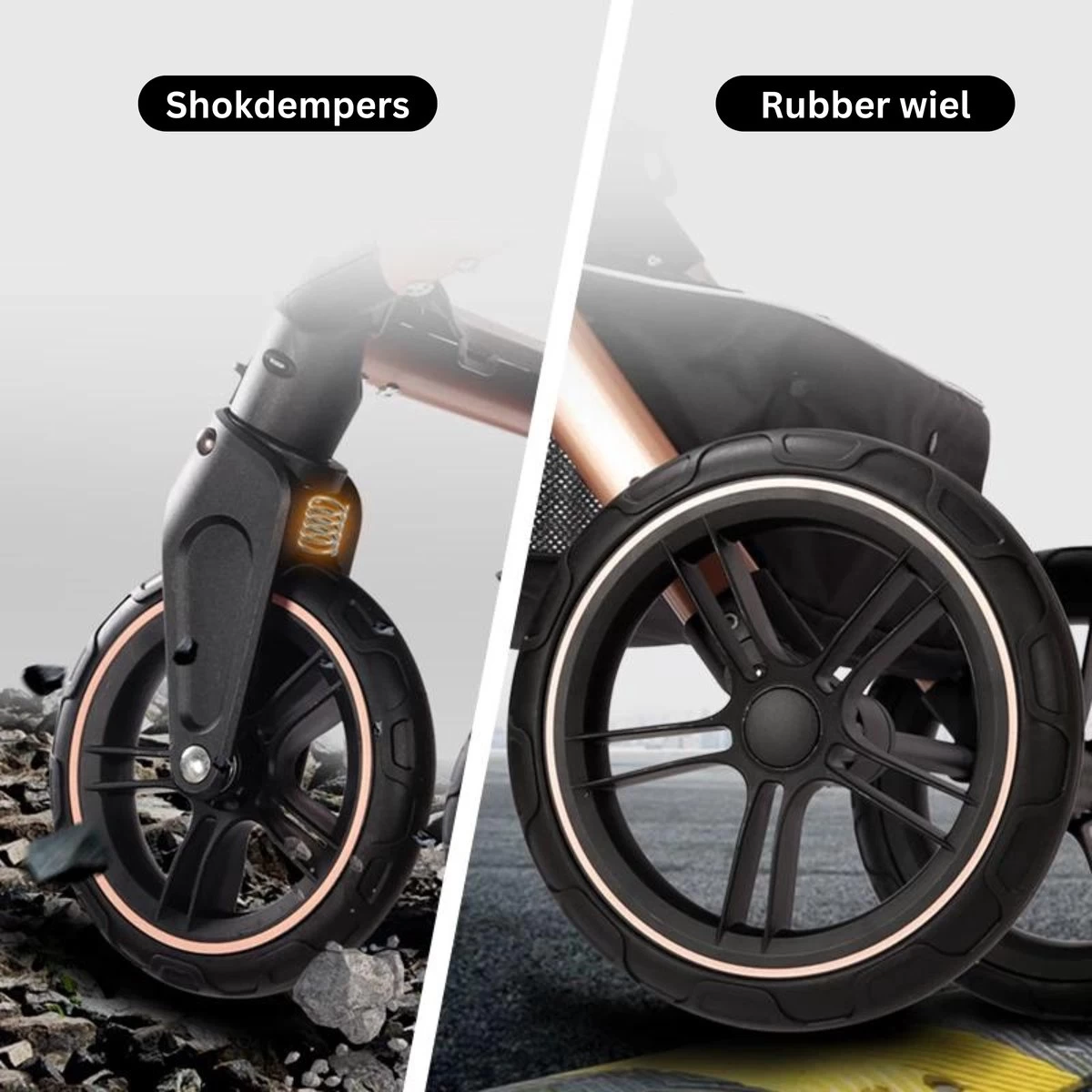 De Luxe Kinderwagen 3 in 1 oogt niet alleen luxe, modern en fashionable, hij ligt ook nog eens ultra comfortabel. De wandelwagen wordt inclusief babymatras geleverd. Dit babymatras ondersteund en beschermd de wervelkolom en ruggengraat.