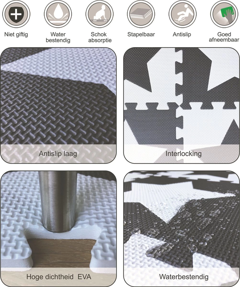 De speelmatten zijn goed afneembaar en bieden binnenshuis extra comfort en veiligheid voor uw kind. Ideale puzzel speelmat voor op uw harde, gladde, koude vloer die er ook nog eens superleuk uit ziet! Totale afmeting mat 90x90x1cm