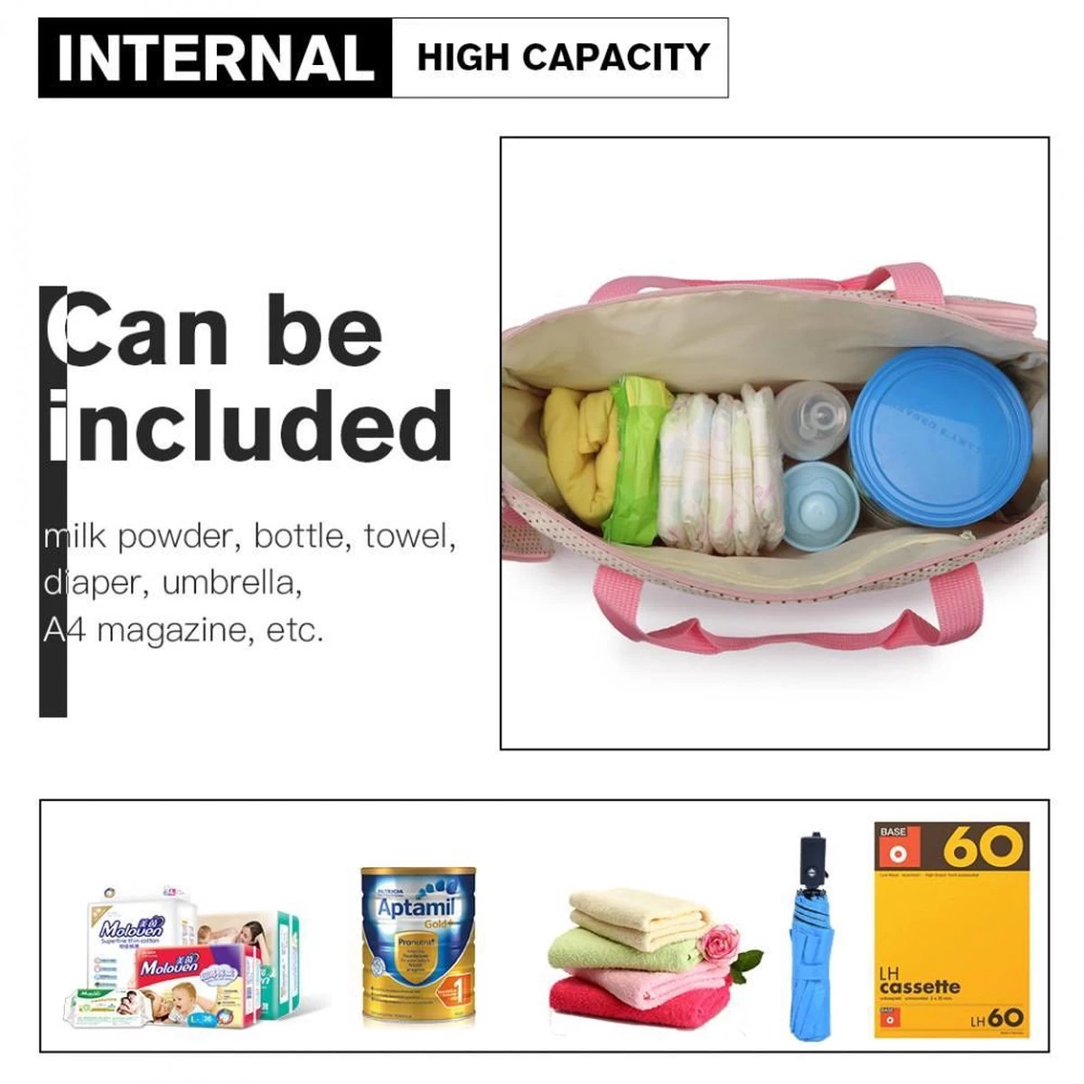 ▶ Een grote luiertas (40cm x 30cm x18cm)