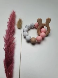 Bijtring, Bijtring Baby, Rammelaar Siliconen Bijtring, Baby Speelgoed, Hout Speelgoed , Kraamcadeau, Baby Speelgoed 0 Jaar