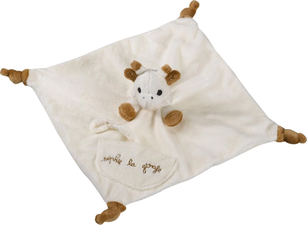 Om uw baby te vertroetelen! Zachte kleuren en een heerlijk zachte stof om uw baby gerust te stellen en te troosten. De doek is, heel handig, voorzien van een koord met een klittenband (velcro®) bevestiging voor de speen en een opbergzak voor maximale hygiëne. Licht en gemakkelijk vast te pakken bij de kop of de poten van Sophie de giraf en de vijf knopen aan de hoeken.