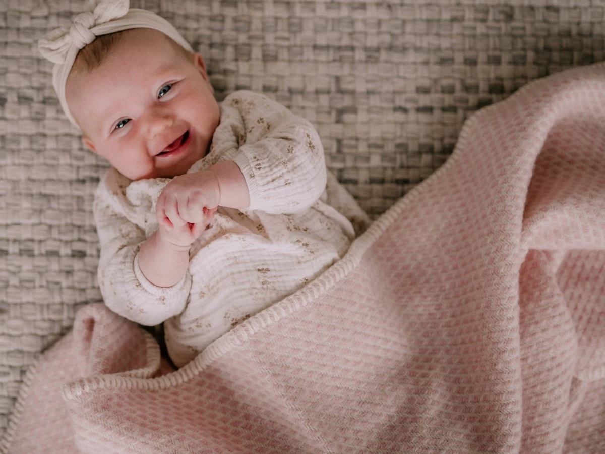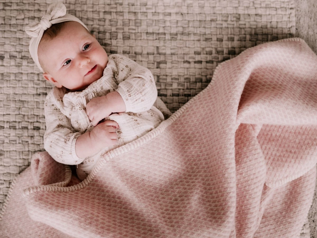 Wiegdeken Wol – Pure Baby Love – Bee – Zacht Roze