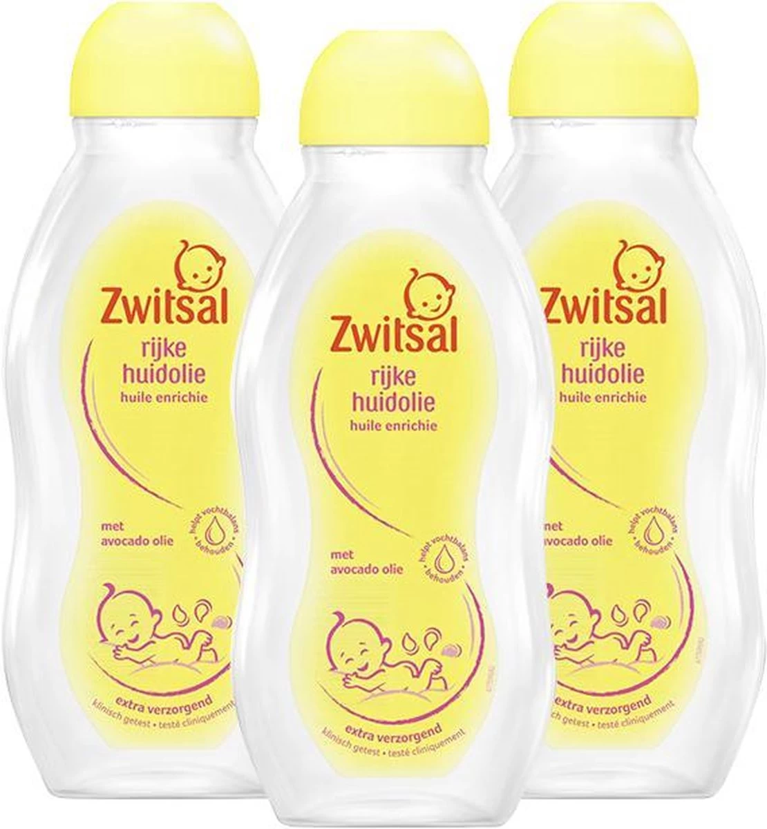 Aanbieding 3 Pack Voordeelverpakking: Zwitsal Baby – Rijke Huidolie – 200ml voor baby, peuter en kleuter is verrijkt met avocado-olie en vitamine E. Daarom hydrateert en verzacht hij de babyhuid extra goed.